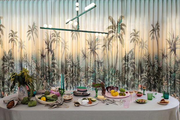 Работая над фильмом «Элвис» Кэтрин Мартин тщательно изучила интерьеры дома Элвиса Пресли в Мемфисе. Под впечатлением от этих исследований она создала уже вторую максималистскую коллекцию в духе 1970-х, главная тема которой — пышные тропические заросли с прогуливающимися по ним павлинами. Свежие цвета джунглей, оперения павлинов, экзотических фруктов в сочетании с декадентскими оттенками румян, виски, шоколада и муската создают немного ностальгическую атмосферу.